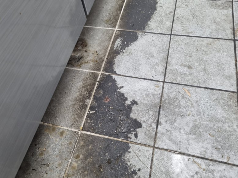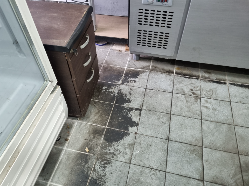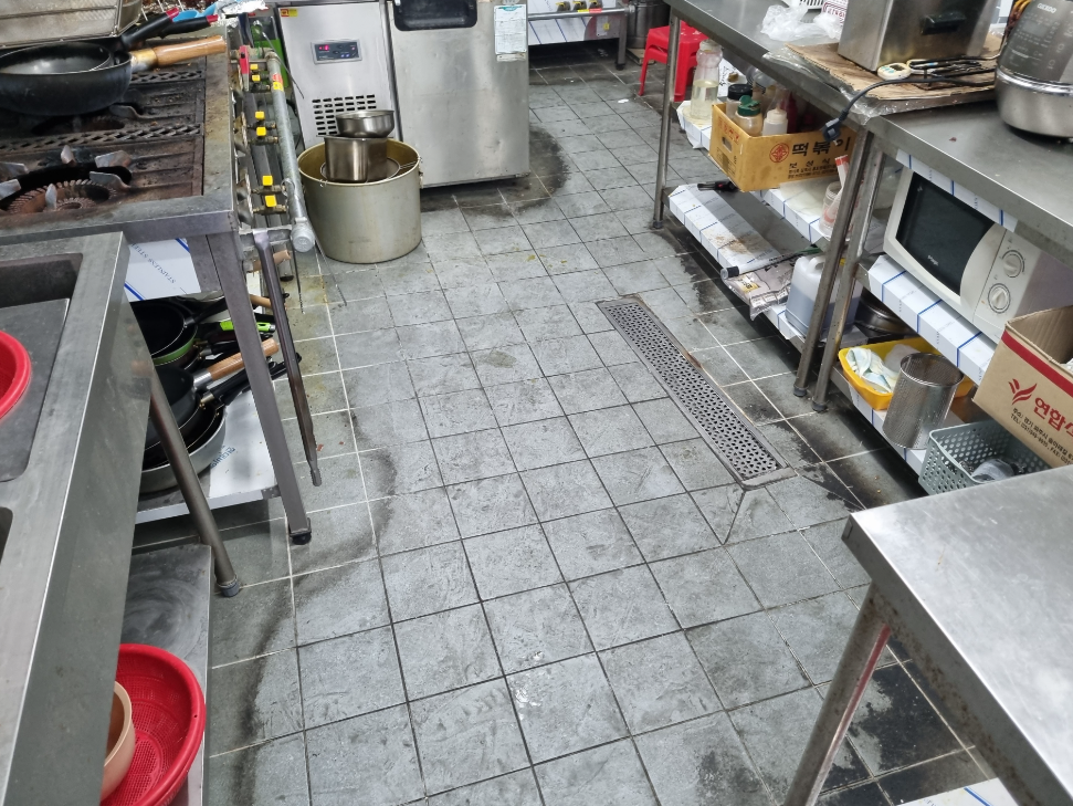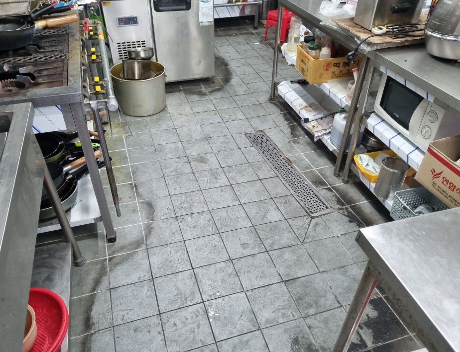 바닥에는 찌든 기름때 + 오염들이 섞여 있어 이것을 평소에 제거하기란 쉽지 않은 상태입니다