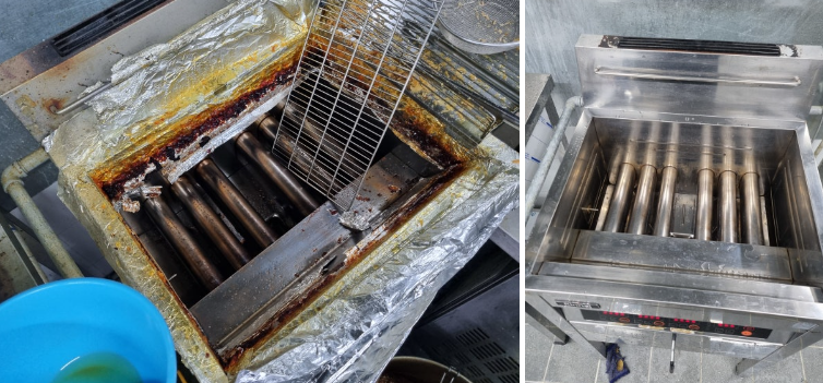 튀김기도 마찬가지 주방후드와 함께 주방 청소의 약 50%를 담당한 구역입니다