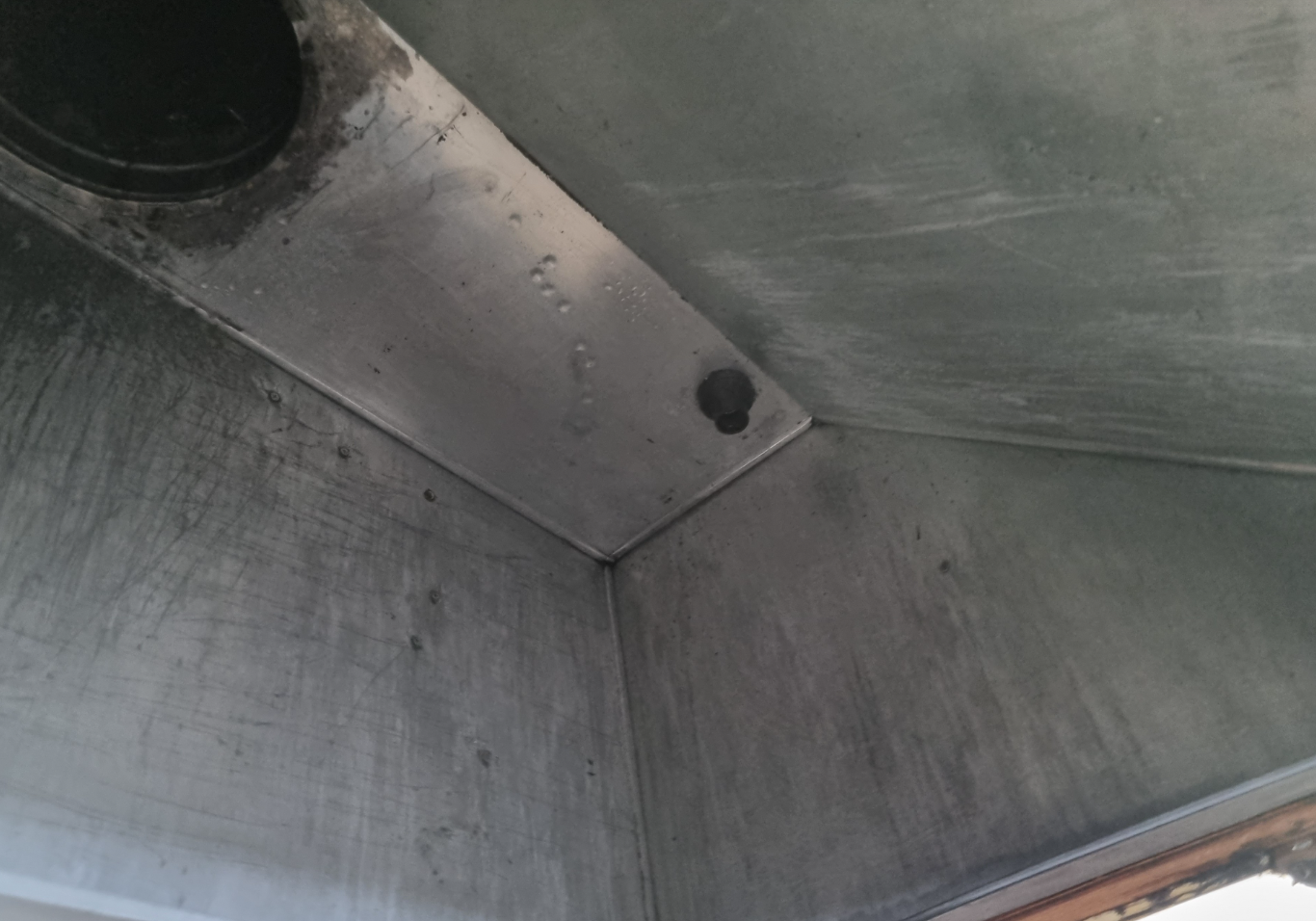 아래에 숯과 함께 기름을 같이 쓴 주방이다 보니 주방 후드에 여러 이물질들로 인해 검게 변한 것을 볼 수 있습니다