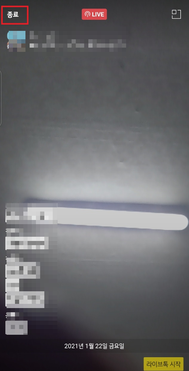 이제 라이브 톡을 종료 하기 위해선 이 아이콘들을 눌러 줍니다